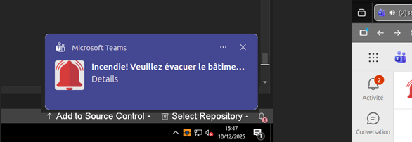 Les alertes sont envoyées via Teams, un environnement sécurisé, centralisé et conforme aux exigences réglementaires modernes.